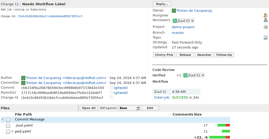 Kubernetes pod doesn't work with synchronize task. Jobs that use a Kubernetes pod based nodeset need a a special parent job to push the test project source on the pod (in SF, the job is already configured and it is named: base-openshift-pod):