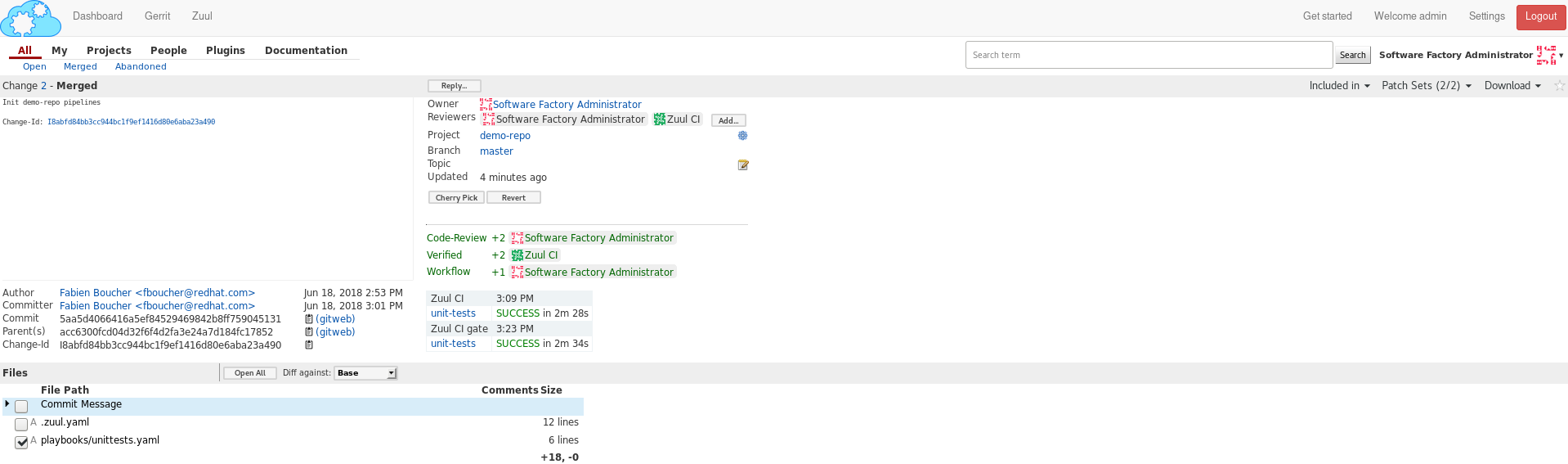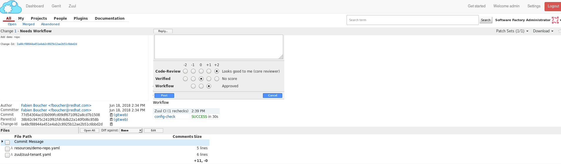 In other words, Zuul ensures the Configuration as Code workflow of Software Factory.