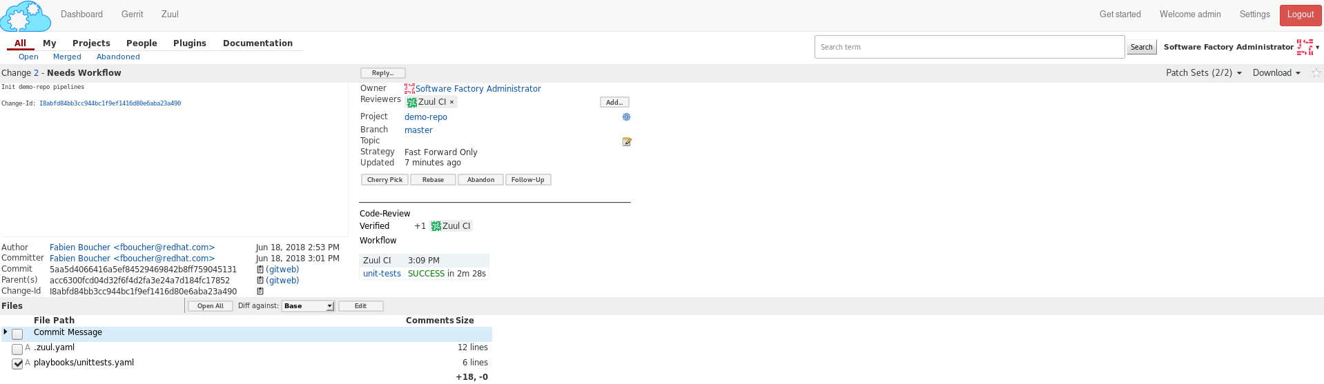 Now, any new patch submitted to the demo-repo repository will trigger automatically this same CI workflow.