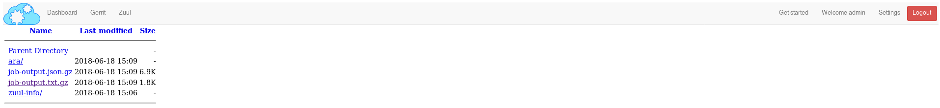 To access a given job's run's logs, simply click on the job name. By default the console logs are saved in job-output.txt.gz. The ARA report gives a more condensed view of the playbook's execution. Also have a look at zuul-info/inventory.yaml which contains all Ansible variables available at playbook runtime.
