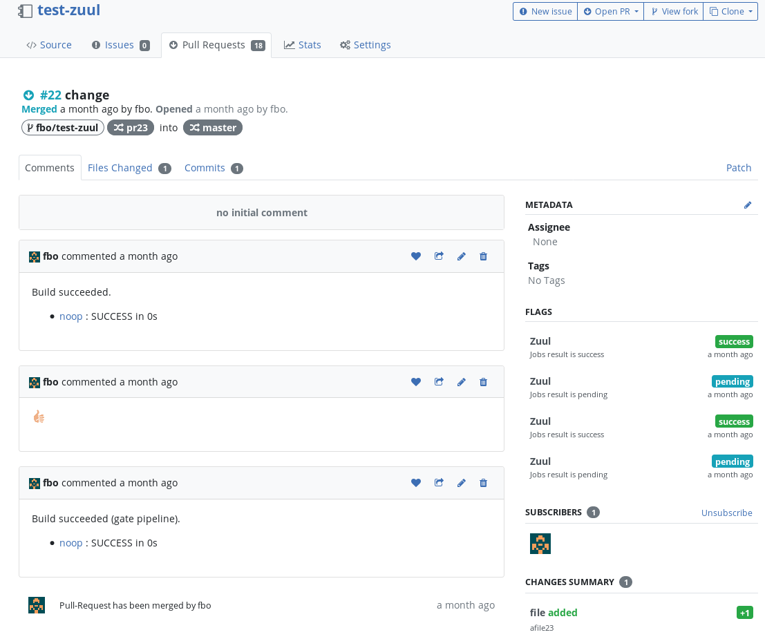 First PR gated by Zuul on pagure.io